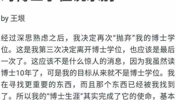 最终,在2012年,他以一篇《对博士学位说永别》的文章,彻底告别了全球的学术体系,并断言:“世界上没有一所学校,能让我安心读完博士。”